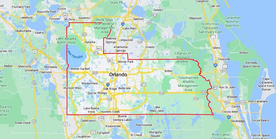 Orange County Map Florida United States of America