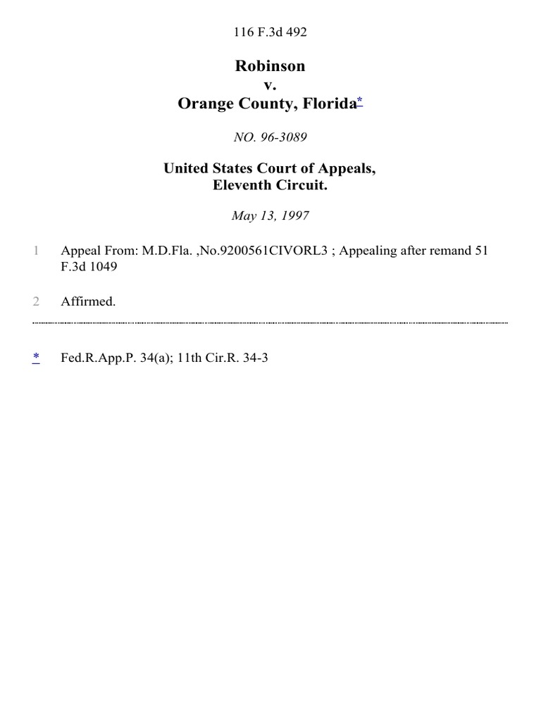 Robinson v Orange County Florida 116 F 3d 492 11th Cir (1997) PDF