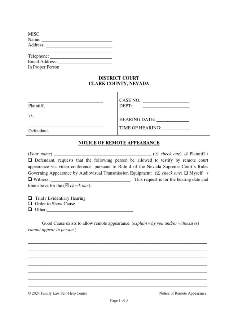 Order Regarding Remote Appearance California Courts Self Help Guide