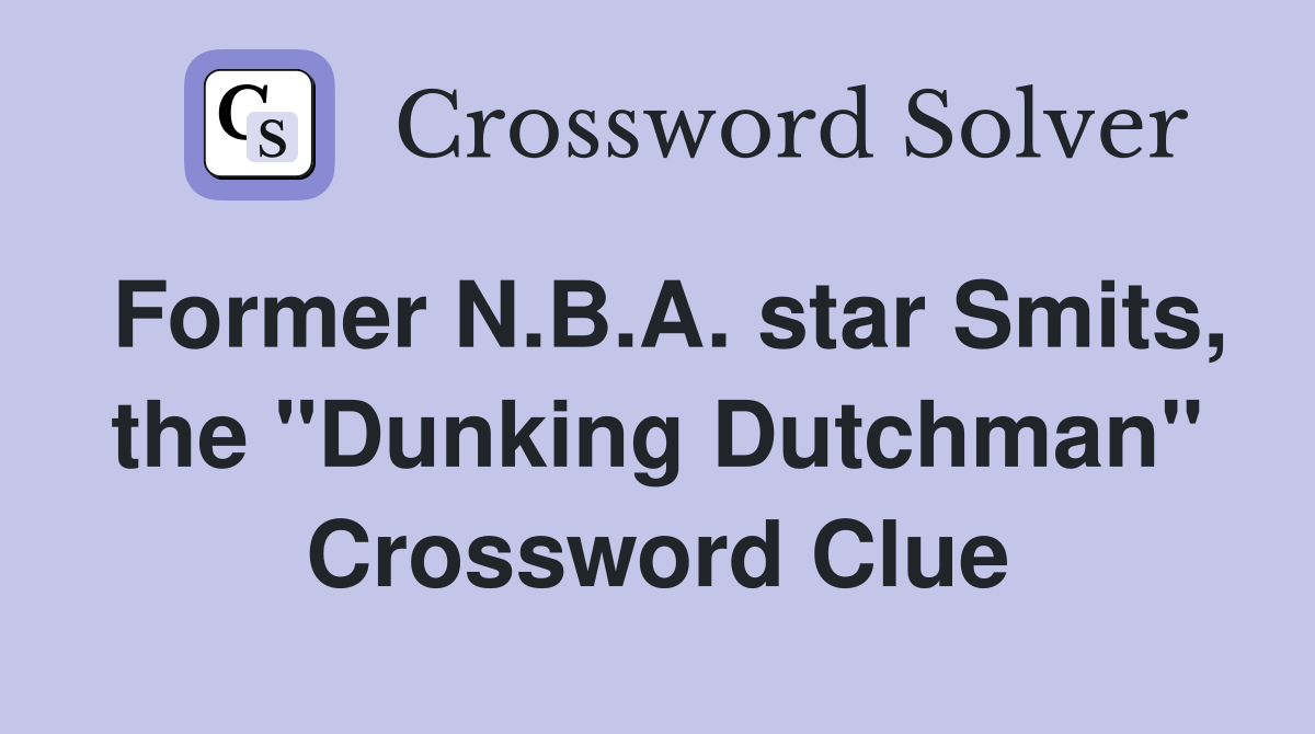Former N B A star Smits the quot Dunking Dutchman quot Crossword Clue