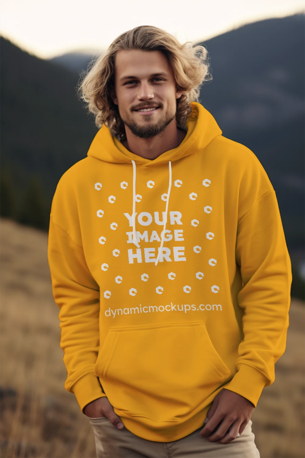 Man Wearing Orange Hoodie Mockup Front View Template #6594 PSD Use