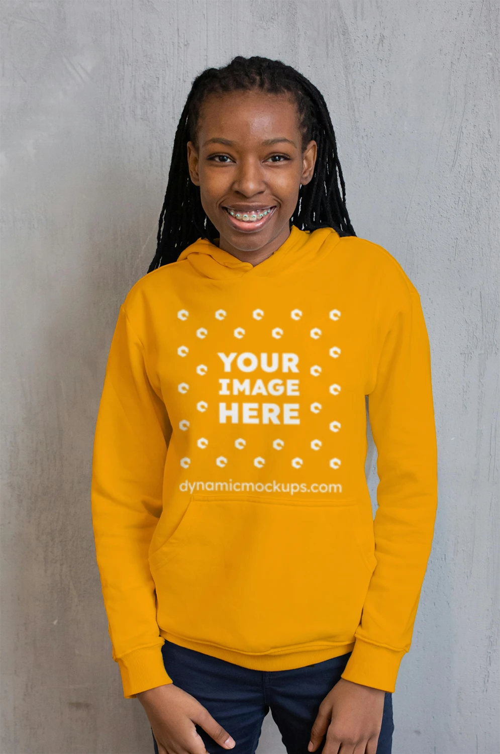 Woman Wearing Orange Hoodie Mockup Front View Template