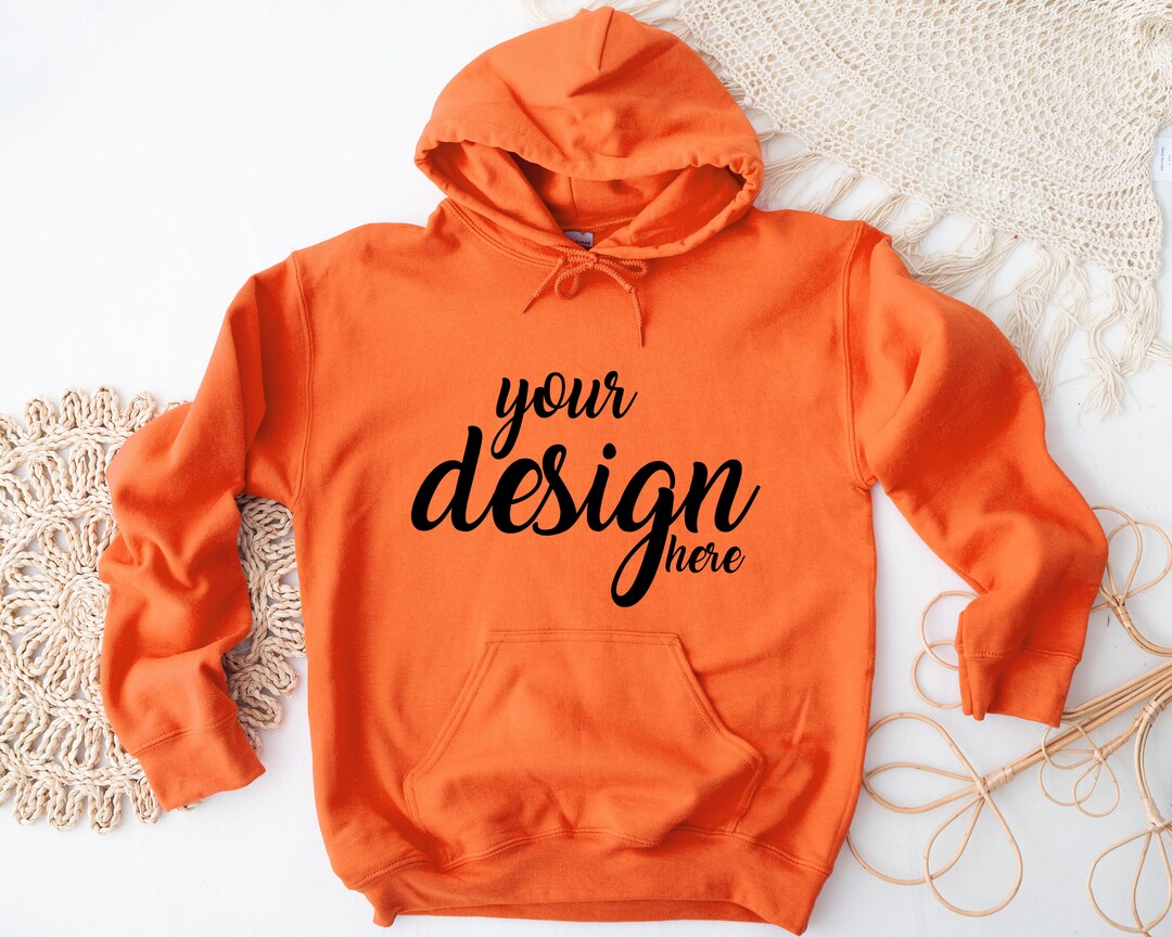Orange Hoodie Mockup Gildan 18500 Flat Lay Simple Mock Up