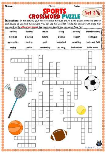 Sport Crossword Puzzle Worksheet Activity Vocabulary Games by Mary