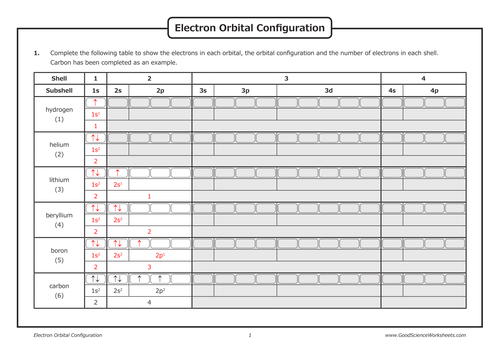 Free Printable Electron Configuration Orbital Diagram Worksheets