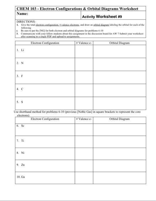 Solved CHEM 103 Electron Configurations Orbital Diagrams Chegg com
