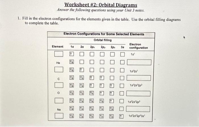 Orbital Diagram Electron Configuration Worksheet Printable Grammar