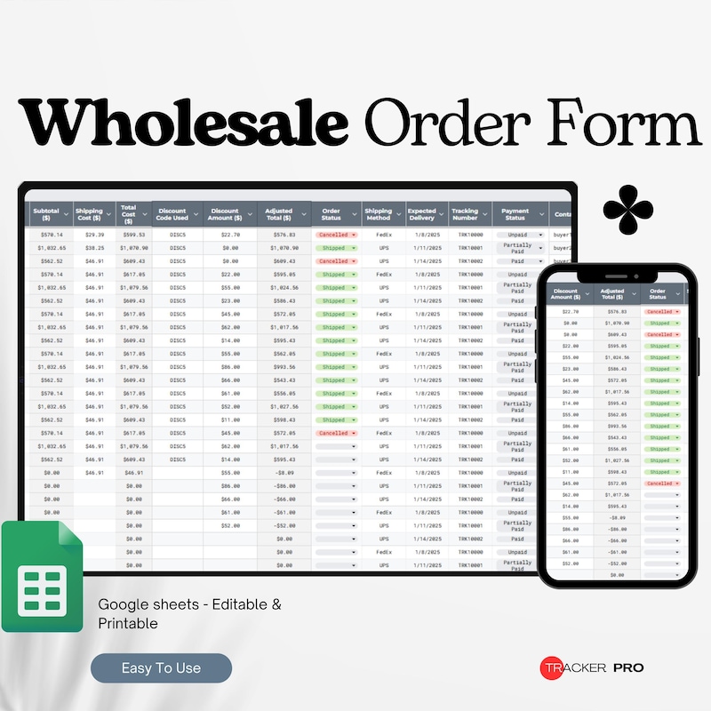 Delivery Order Template Excel/google Sheets Sales Order Template