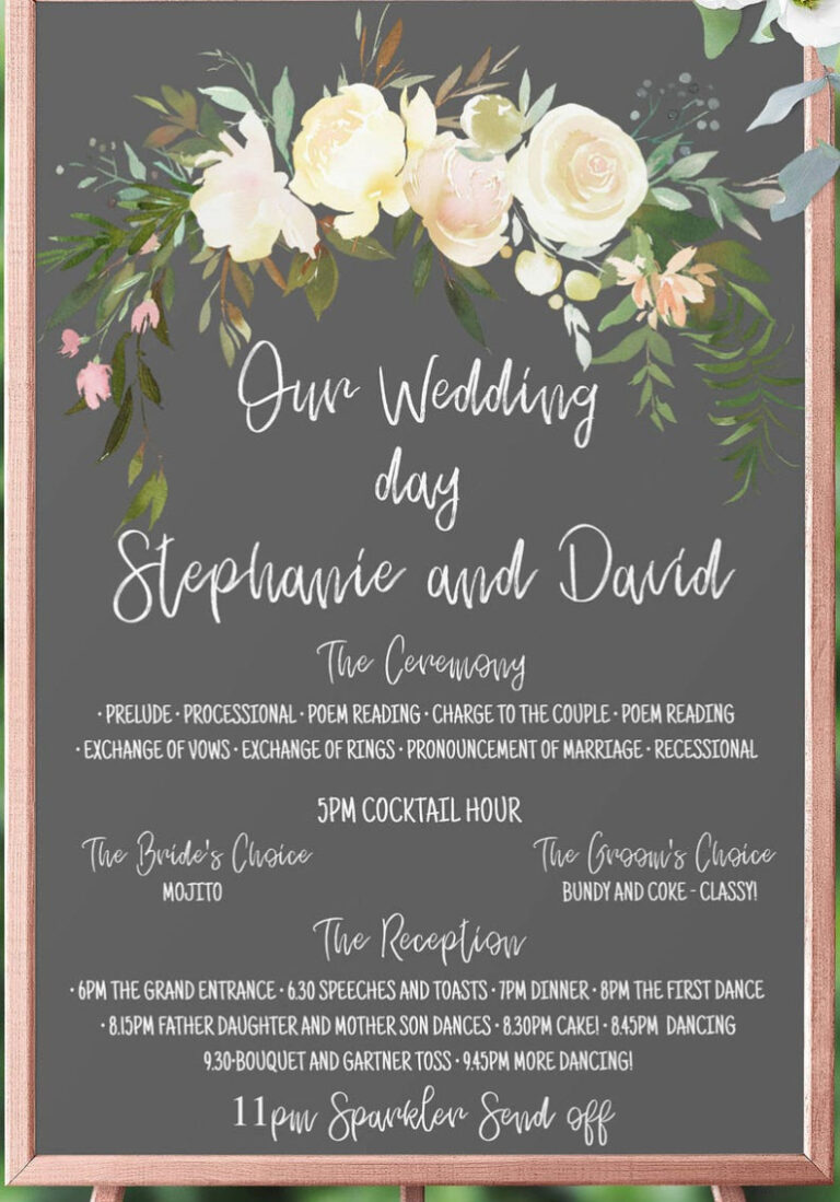 Wedding Order of Events Template Wedding Order of the Day Sign