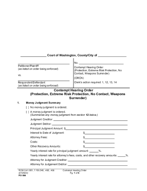 Contempt Hearing Order (Protection Extreme Risk Doc Template
