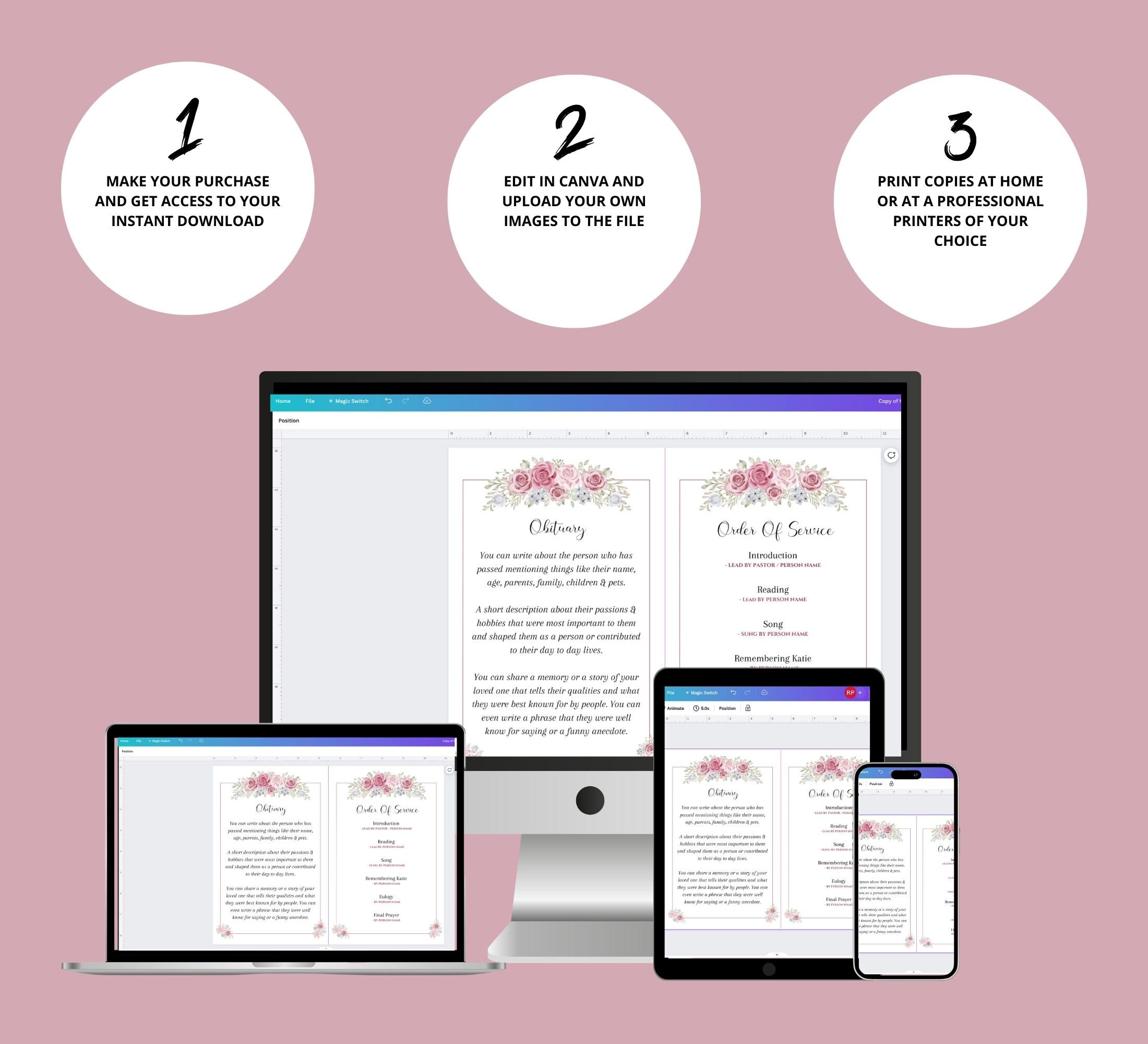 Funeral Order of Service Booklet Printable Memorial Editable Etsy UK