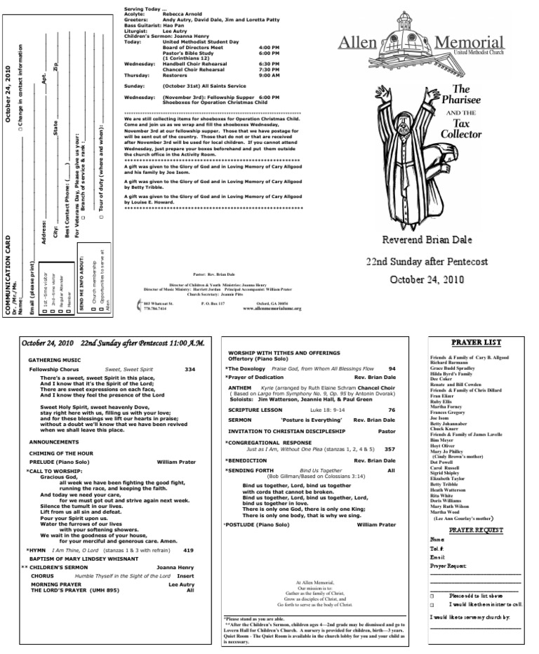 Order of Worship October 24 2010 PDF Christian Behaviour And