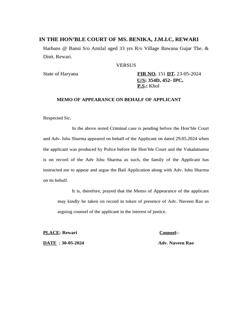 Memo of Appearance PDF