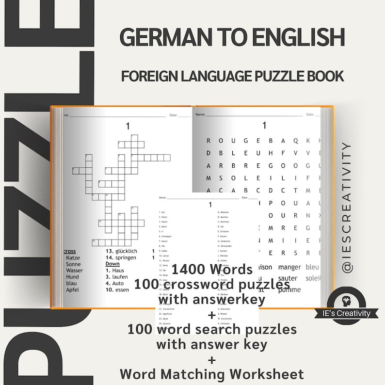 German to Englısh Printable Crossword and Word Search 750 Words Word