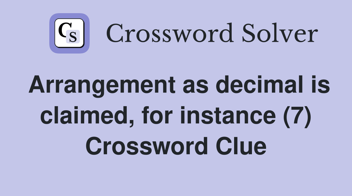 Arrangement as decimal is claimed for instance (7) Crossword Clue