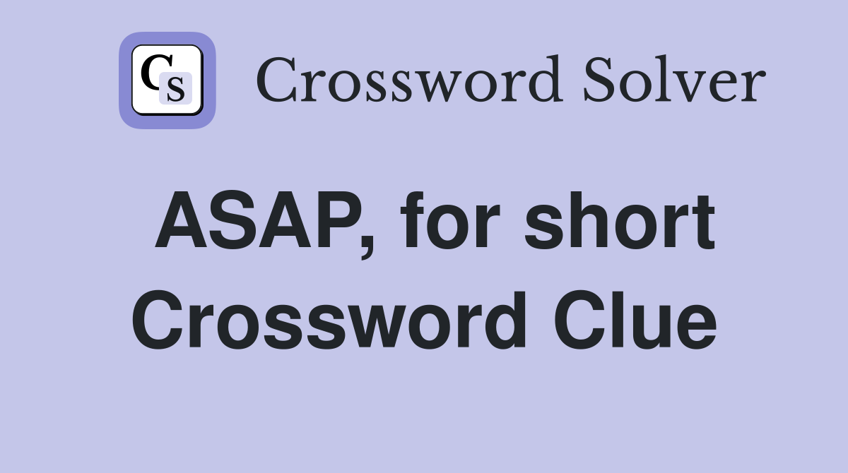ASAP for short Crossword Clue Answers Crossword Solver