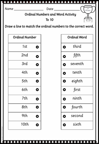 Ordinal Numbers Matching Worksheets Teaching Resources