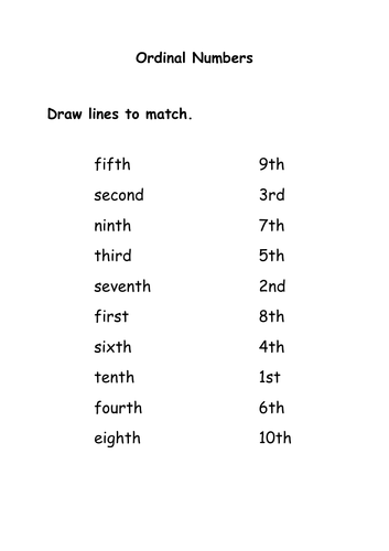 Match Ordinal Numbers Worksheet Free Worksheets Samples