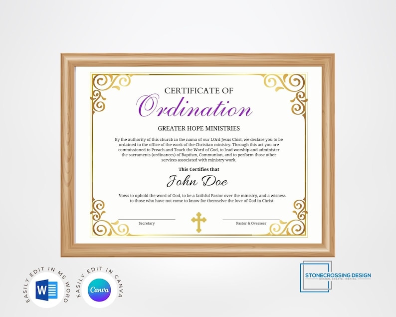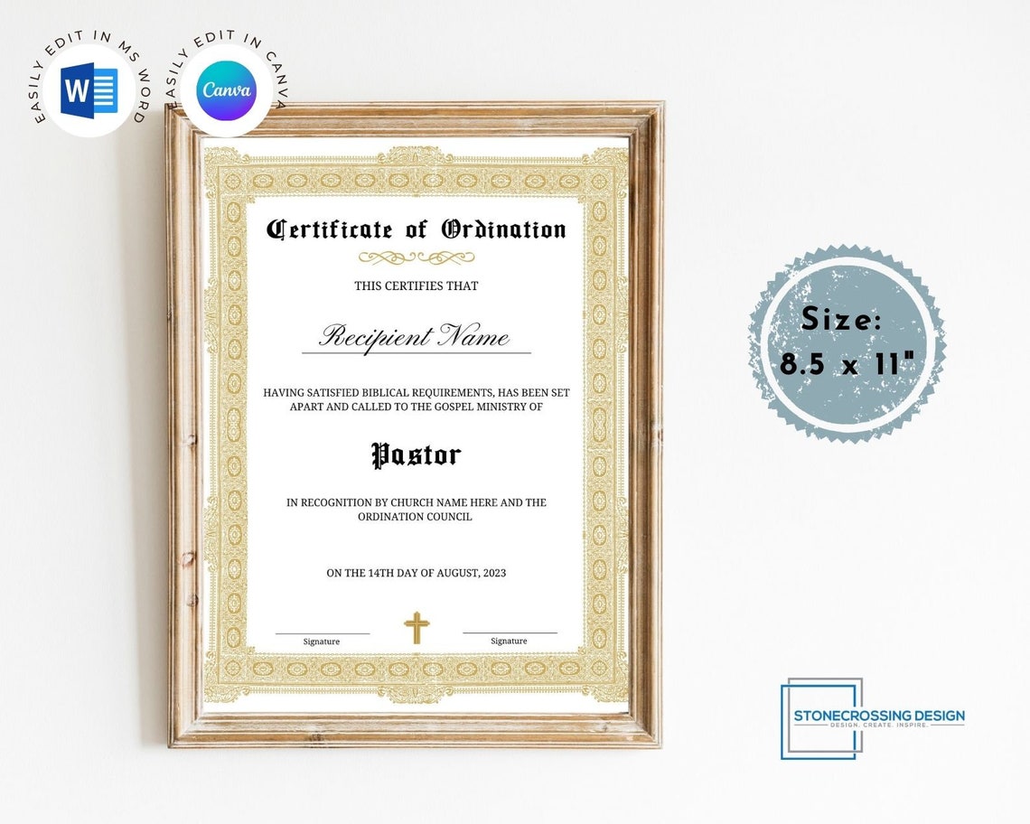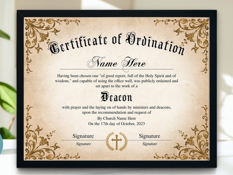 Editable Certificate of Ordination Template Ordained Minister Deacon