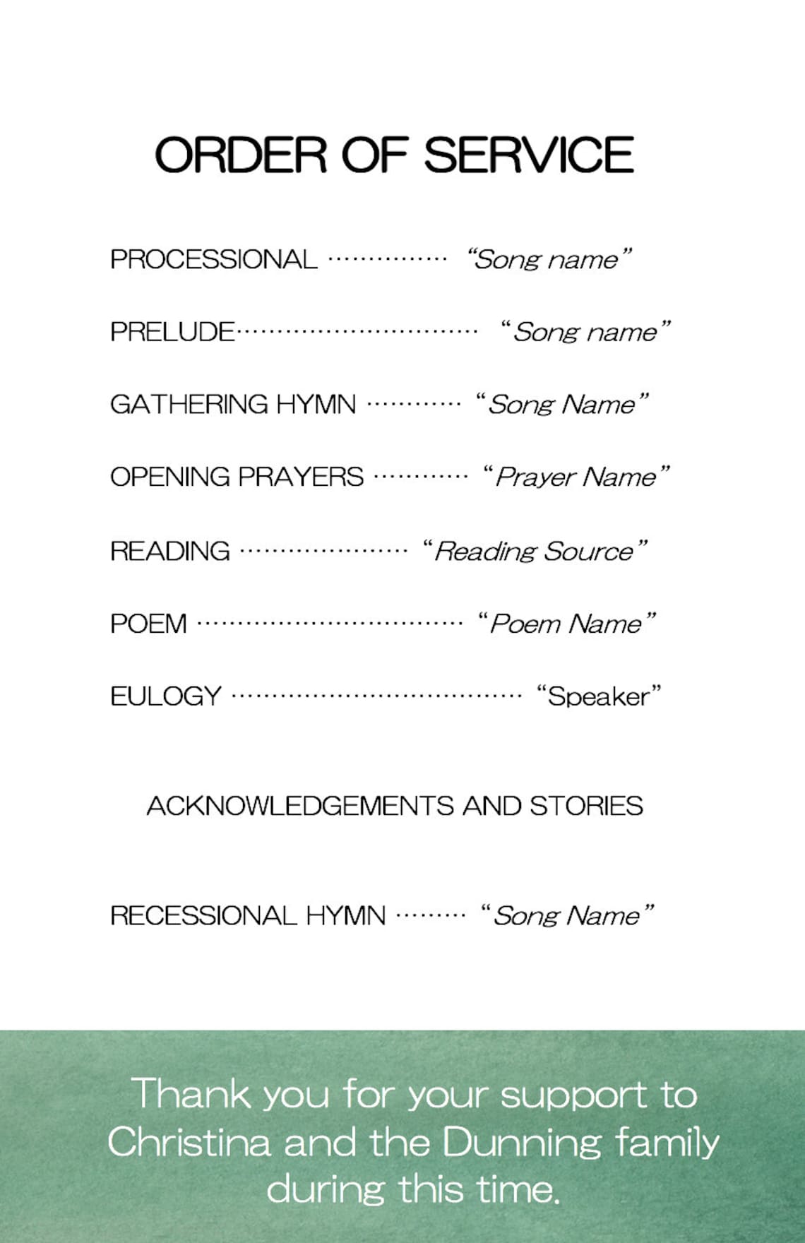 Watercolor Green Funeral Program Template Baby Memorial Service Life