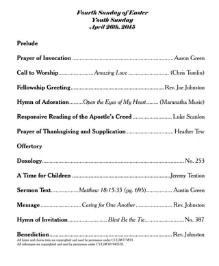 Knightdale Baptist Church April 26th 2015 Worship Bulletin PDF