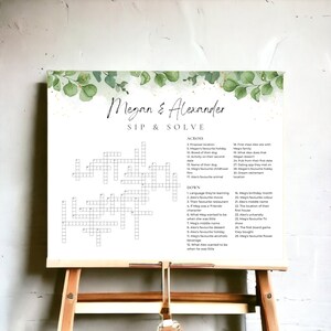Custom Crossword Puzzle for Wedding With Sage Green Eucalyptus