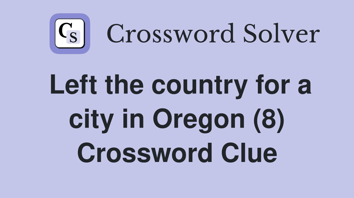 Left the country for a city in Oregon (8) Crossword Clue Answers