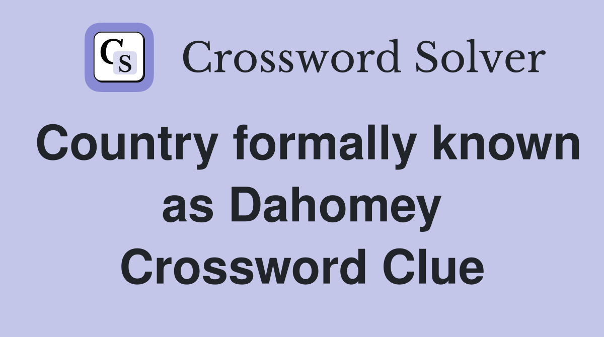 Country formally known as Dahomey Crossword Clue Answers Crossword