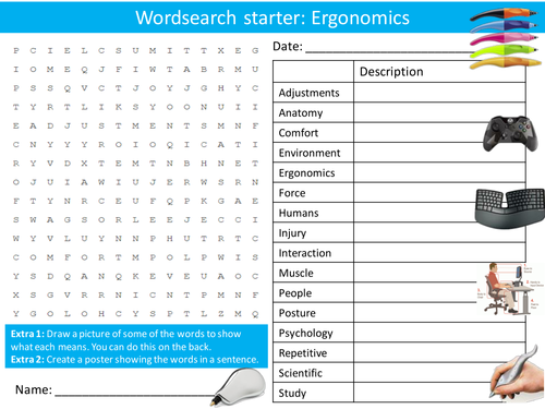 Design Technology Ergonomics Starter Activities Wordsearch Anagrams