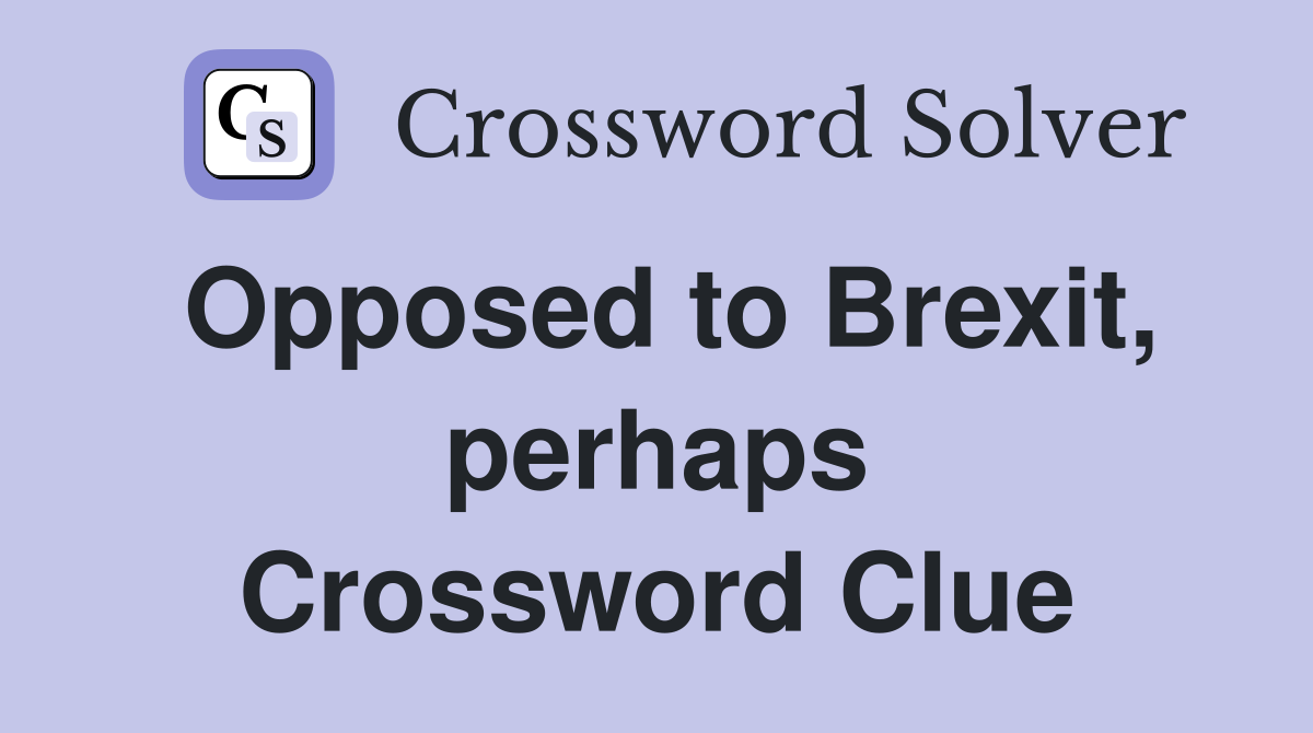 Opposed to Brexit perhaps Crossword Clue Answers Crossword Solver
