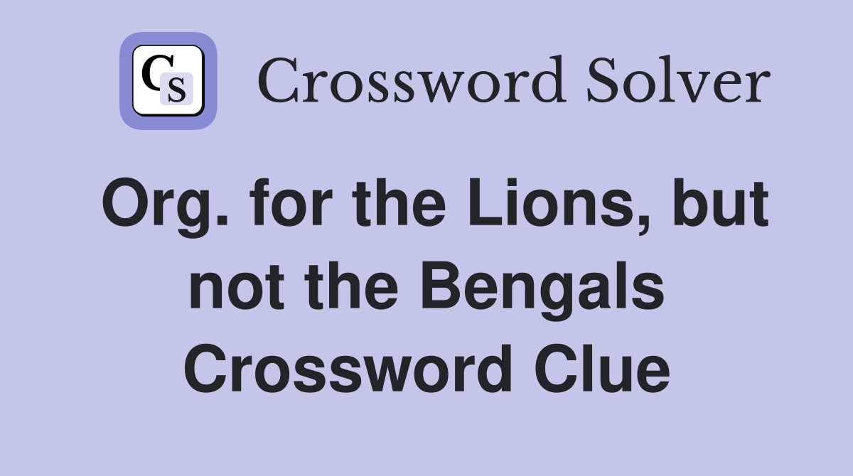 Org for the Lions but not the Bengals Crossword Clue Answers
