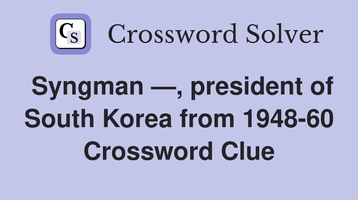 Syngman president of South Korea from 1948 60 Crossword Clue