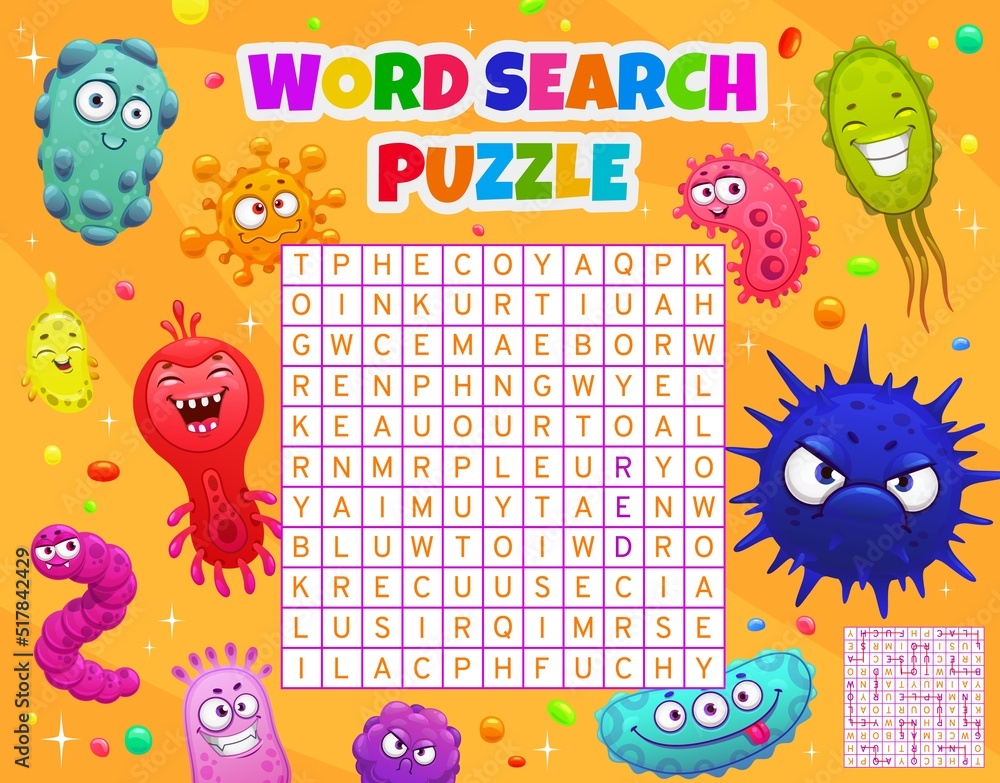 Cartoon germs viruses and microbes word search puzzle game worksheet
