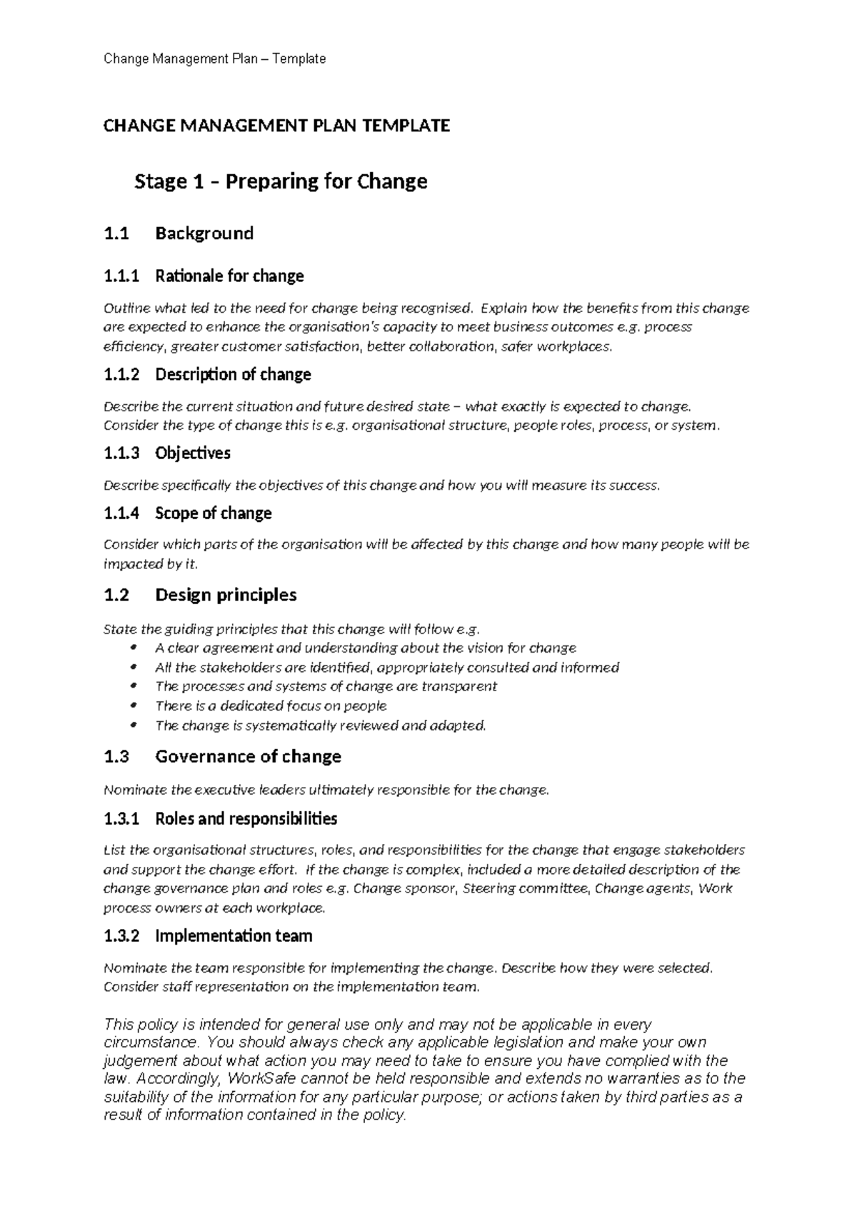 Printable Organizational Change Management Plan Template ~ Addictionary