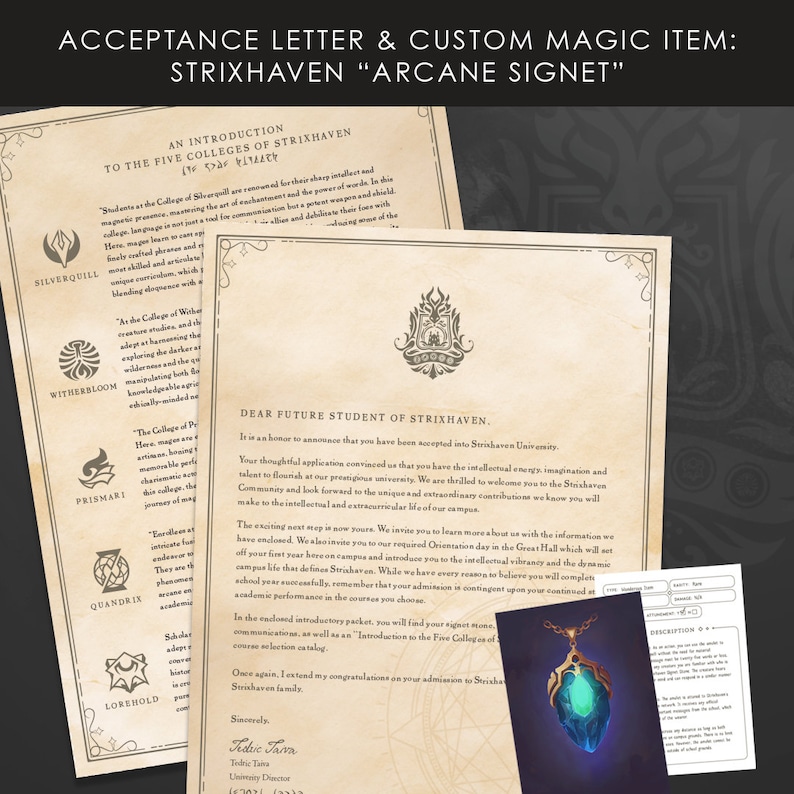 Stixhaven Orientation Packet / Acceptance Letter / Strixhaven