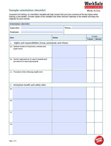 FREE 33 Orientation Checklist Samples in PDF MS Word
