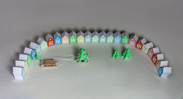 Origami Advent Calendar Girl Looking upon Tiny Paper Houses Christmas