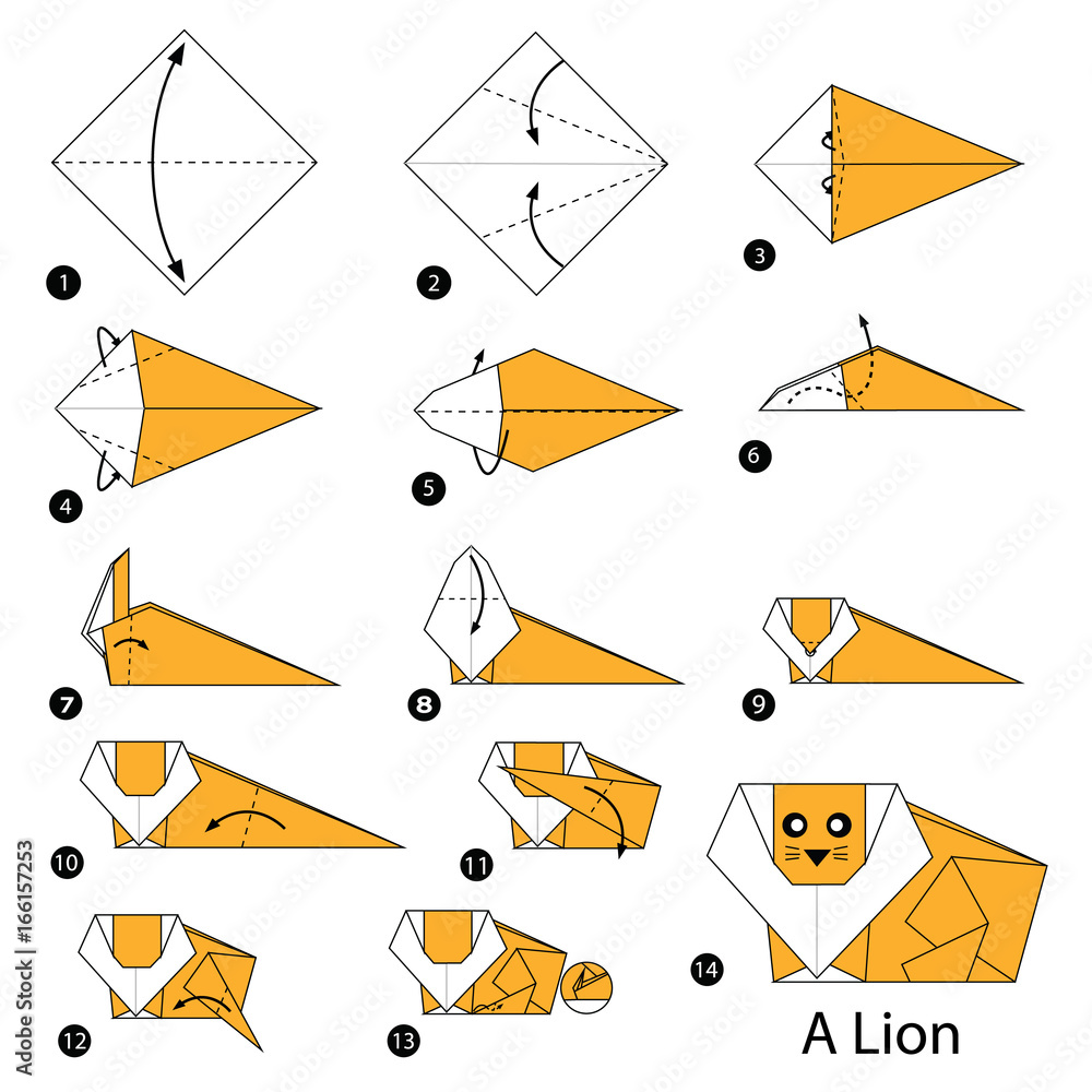 step by step instructions how to make origami A Lion Stock Vector
