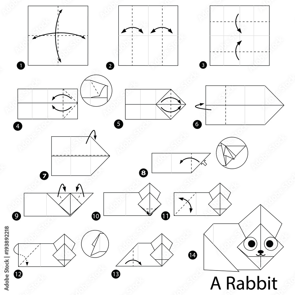 step by step instructions how to make origami A Rabbit Stock Vector