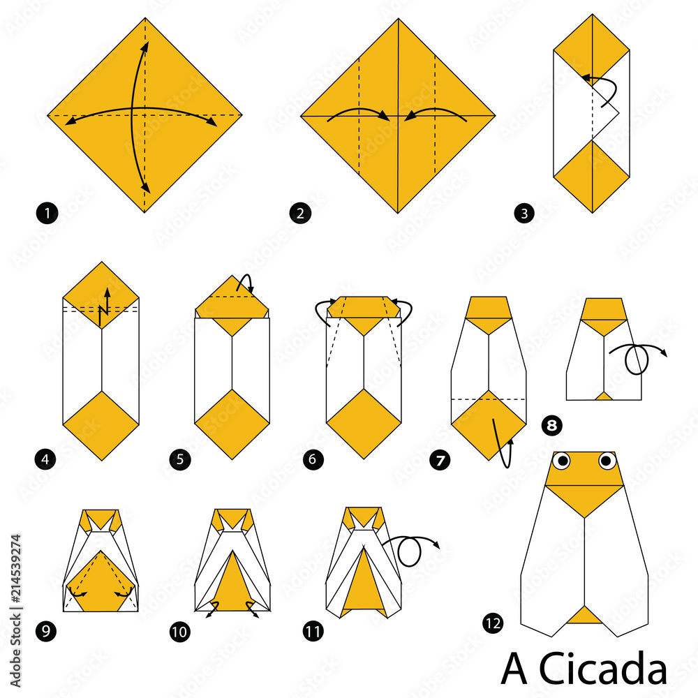 step by step instructions how to make origami A Cicada Stock Vector