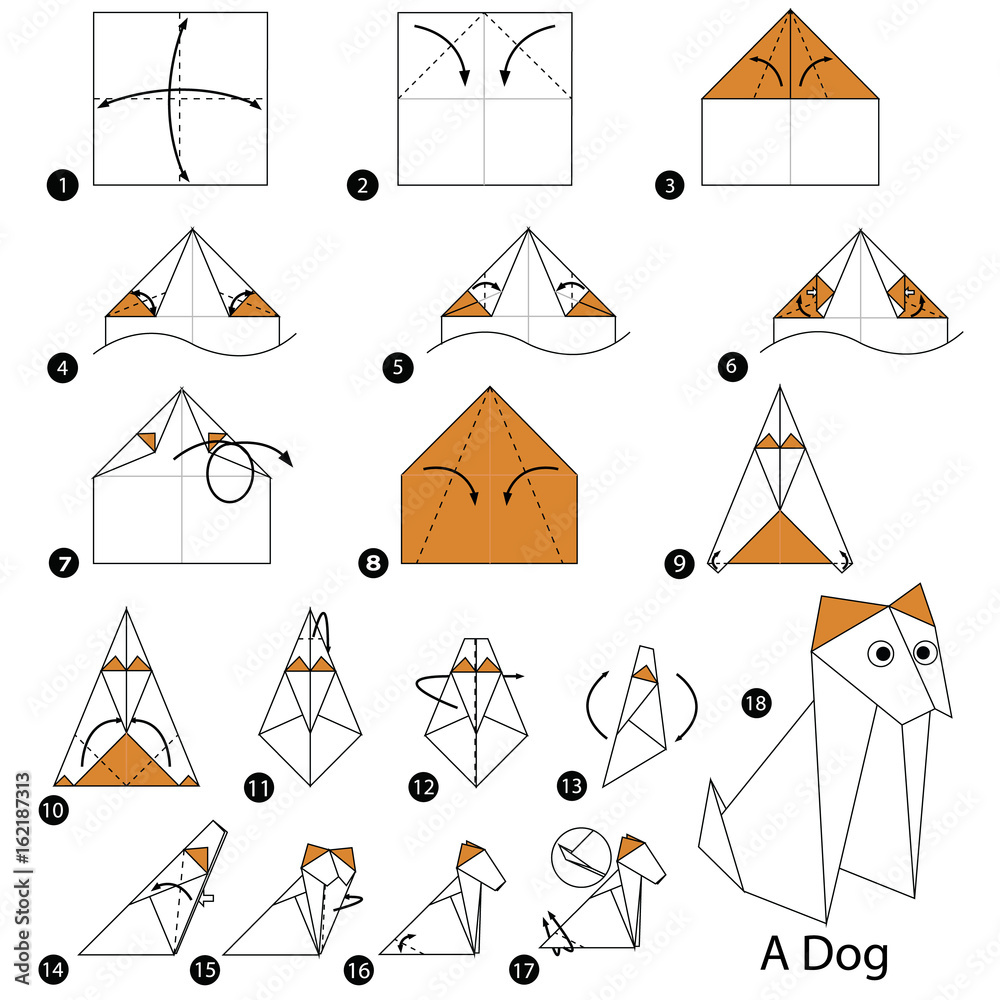 step by step instructions how to make origami A Dog Stock Vector