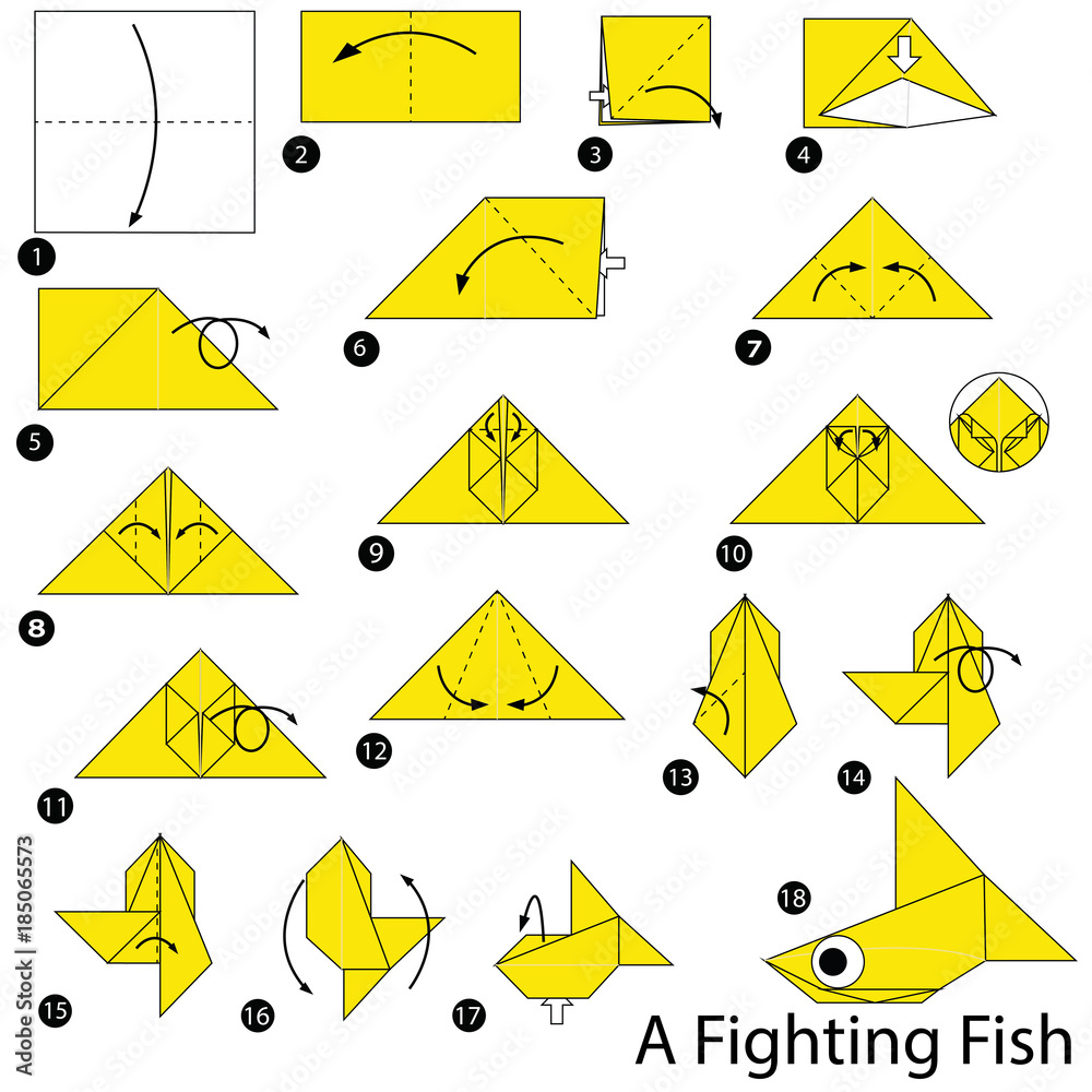 step by step instructions how to make origami A Fighting Fish Stock