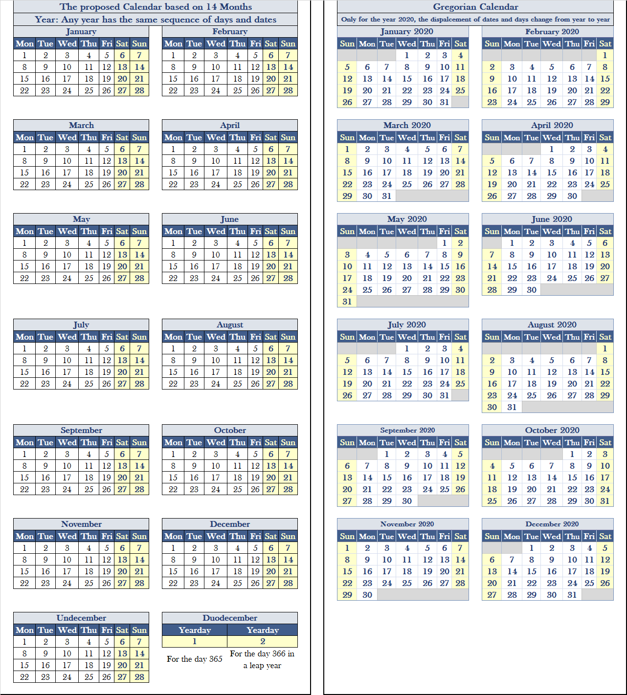 Real Calendar Unique 28 day Format 364 Days Calendar 13 Months