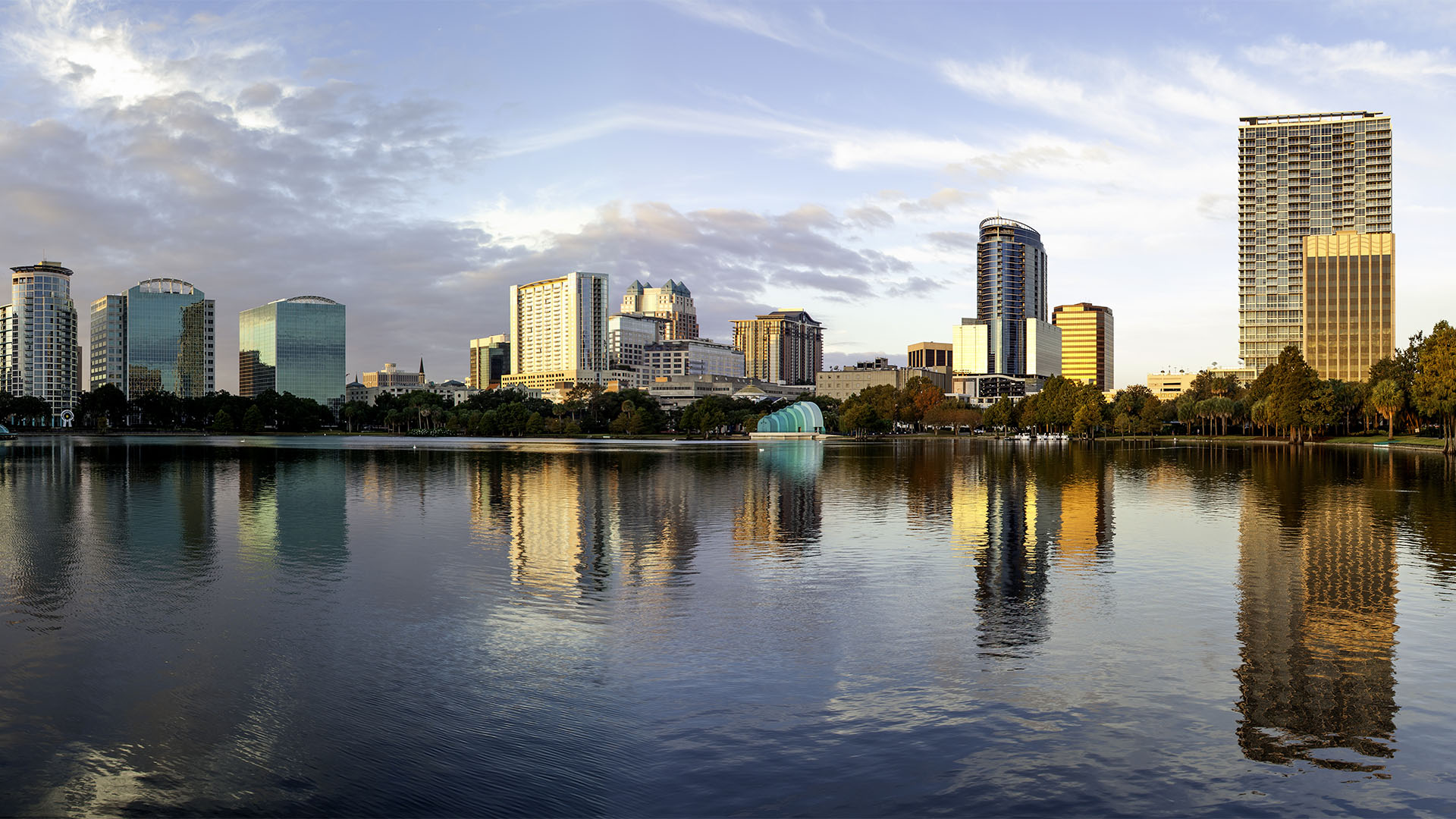 Orlando Florida skyline Lake Eola cityscape skyscrapers