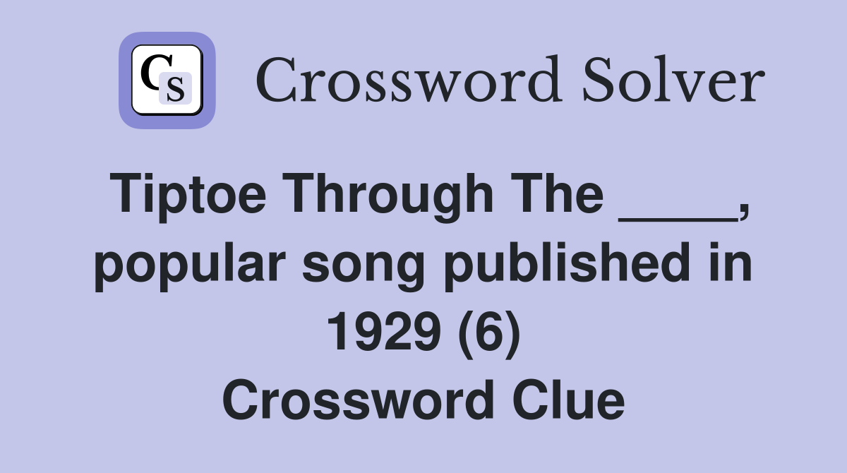 Tiptoe Through The popular song published in 1929 (6) Crossword