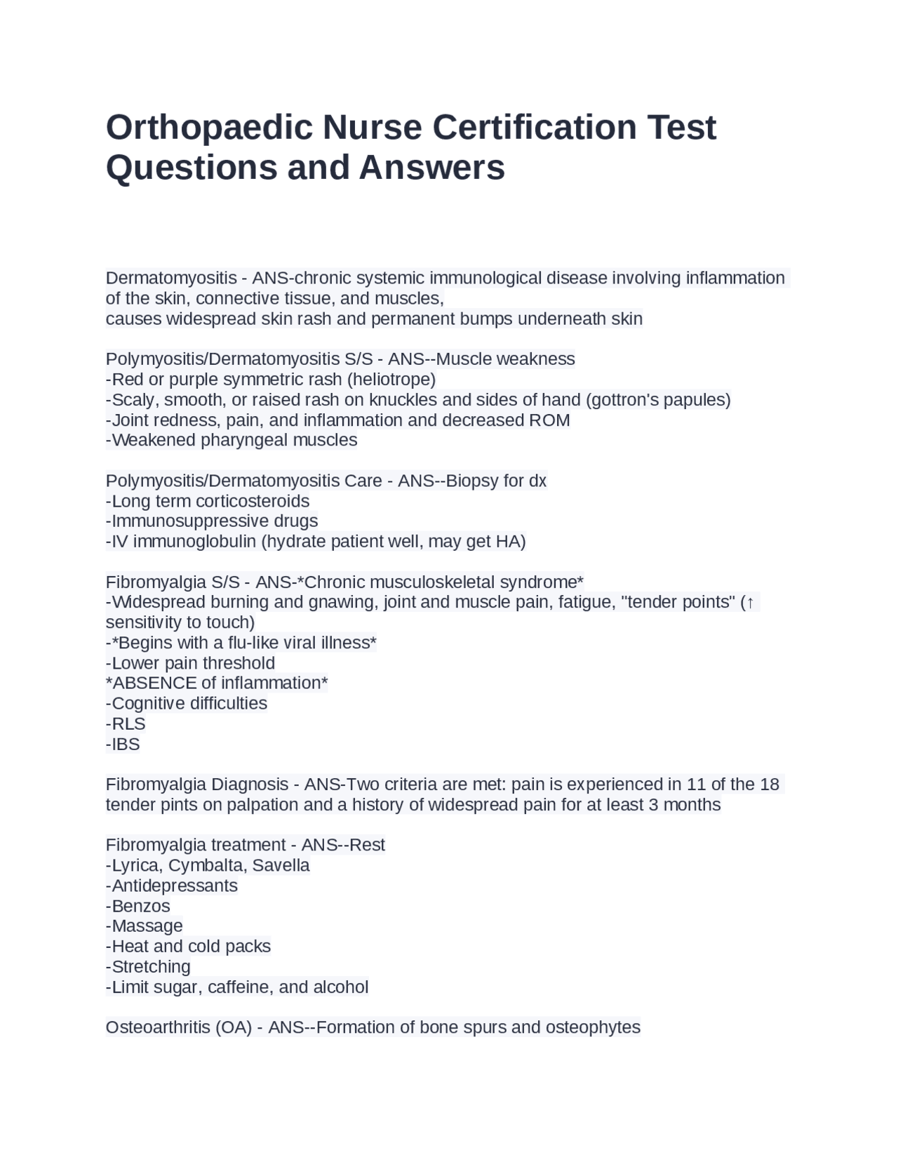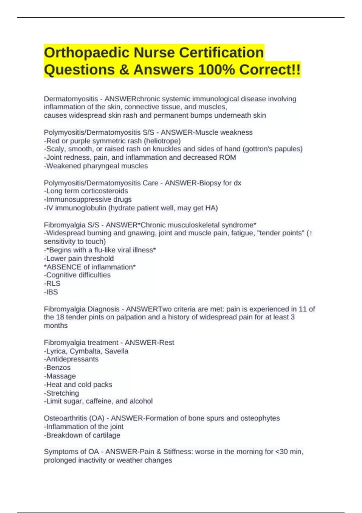 Orthopaedic Nurse Certification Questions Answers 100% Correct
