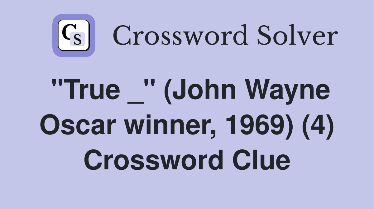 quot True quot (John Wayne Oscar winner 1969) (4) Crossword Clue Answers