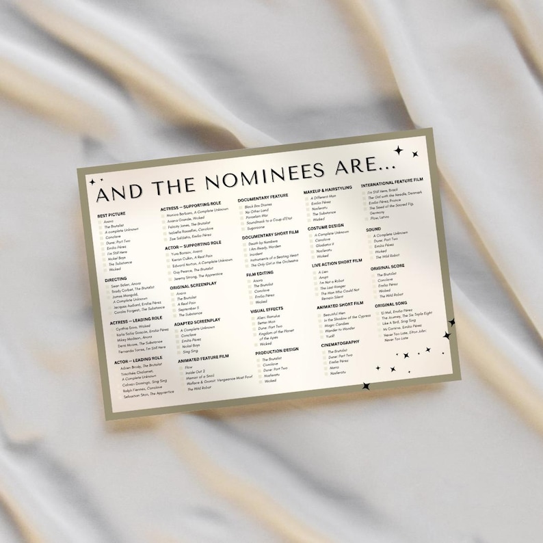 Oscars 2025 Party Invitation Ballot Editable Canva Template