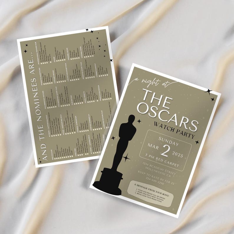 Oscars 2025 Viewing Party Invitation Editable Template Movie Night