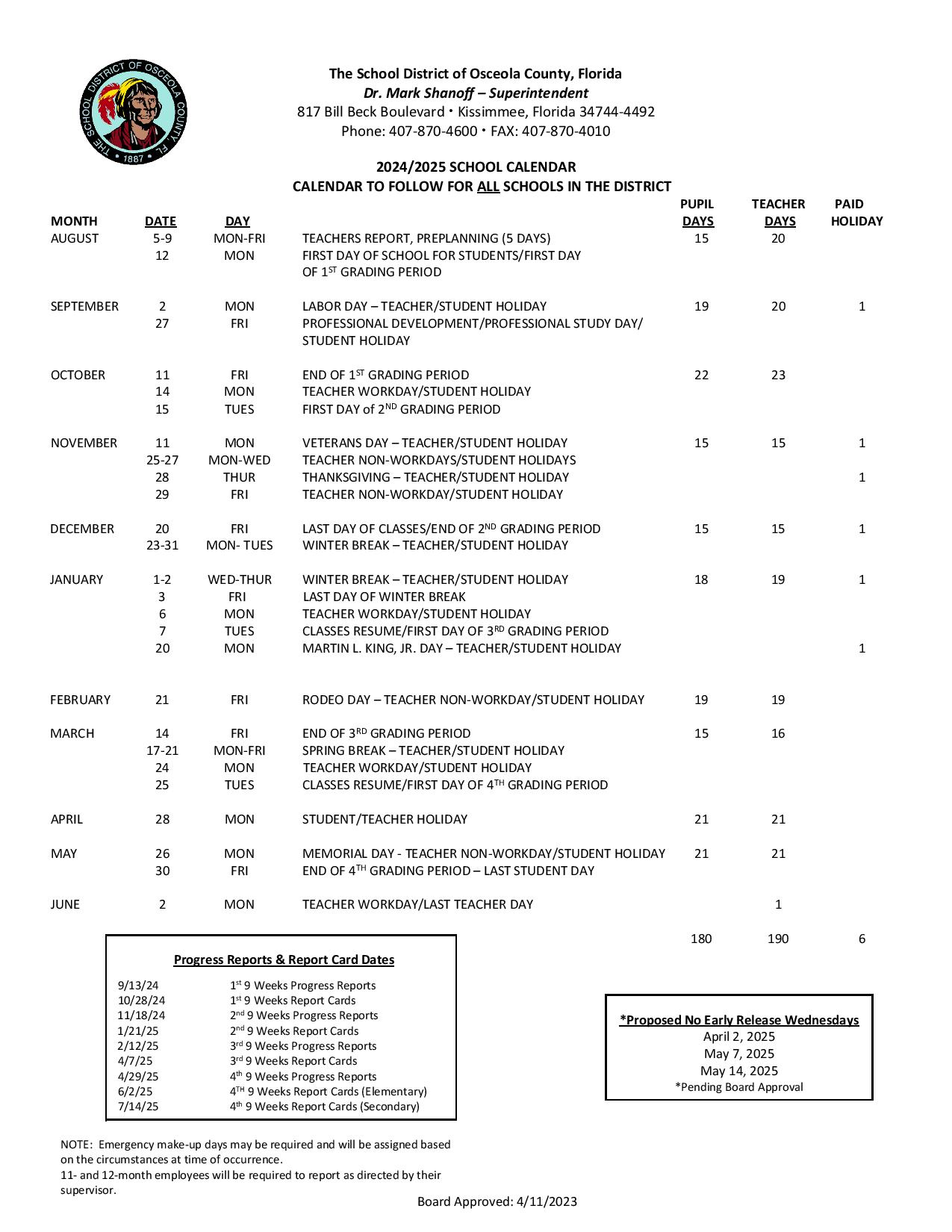 Osceola County fl Schools Calendar 25 26 PDF EduCounty